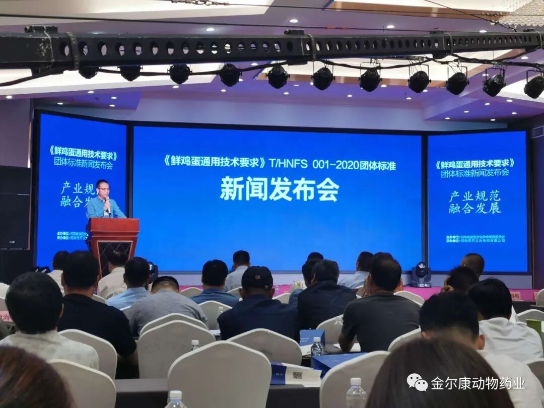 2020年9月20日,郑州市经开区大雅智泽酒店多功能报告厅《鲜鸡蛋通用技术要求》团体标准发布会暨蛋品产业项目对接签约活动如期举行。 河南省食品安全协会领导、行业知名院所代表、专家出席发布会。金尔康集团总经理温长印先生、研发中心崔耀明教授应邀出席。